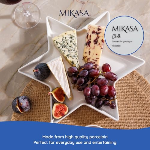 MIKASA Chalk Star Porcelain Serving Platter, White Glossy Star Shaped Plate, Ideal for Buffets, Appetisers, Desserts, Party Food, Dishwasher Safe, 30cm