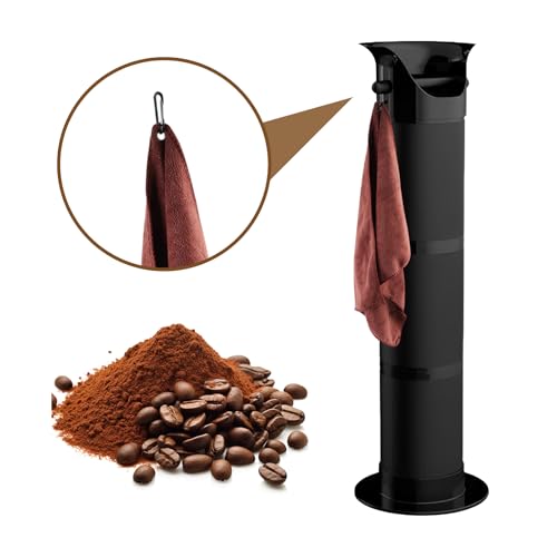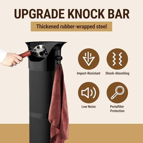 Milageto Coffee Grounds Knock Box, Floor Standing Espresso Collection Dump Bin Large Capacity Coffee Grounds Bucket for Home and Commercial Use with Removable Non-Slip Base & Knock Bar & Towel, Black