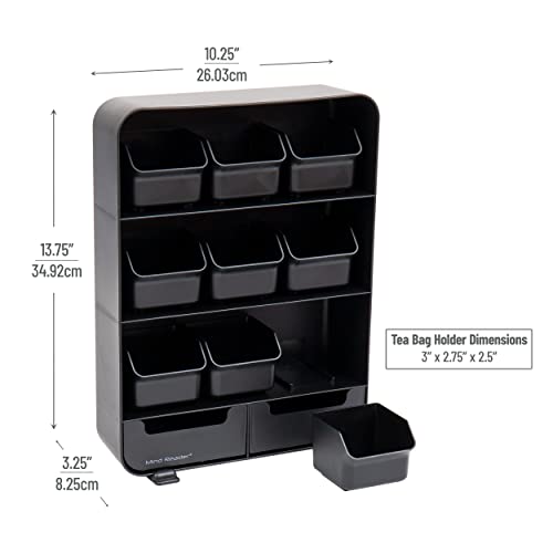 Mind Reader Anchor Collection, 11-Drawer Tea Bag Organizer, Removable Drawers, 10.25" L x 3.25" W x 13.75" H, Black