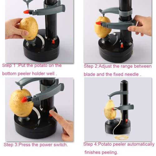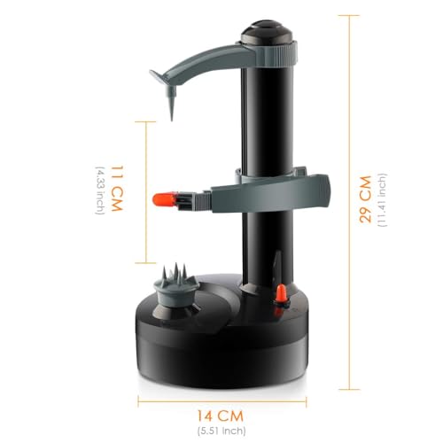 - 【Quick Peeling & No Waste】With flexible arm and stainless steel sharp blade, the rapid peeler can peel away potato, vegetables and fruit in seconds. Robotized arm can adjust thickness and automatic balance in peeling process. It peels just the skin without wasting any of the nutritious part of the vegetables.