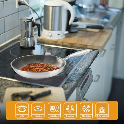 - Multi-Cooktop Compatibility: 24cm Small stainless steel frying pan works flawlessly on induction, gas, ceramic, and electric cooktops.
