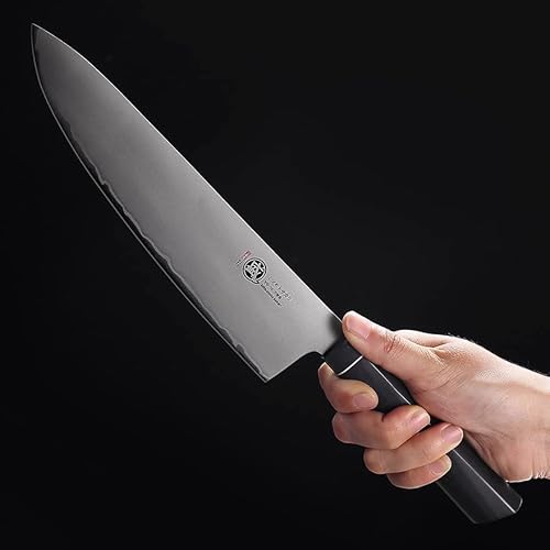 - Good Cooking Knife:The 8 inch long Japanese chef knife is easy to perform everyday kitchen tasks and the handle is designed to keep your hand properly balanced. The sharp blade cuts through ingredients with ease