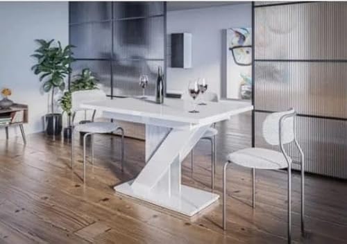 - MODERN DESIGN: Contemporary dining table featuring a sleek white glossy finish top contrasting with an industrial concrete base