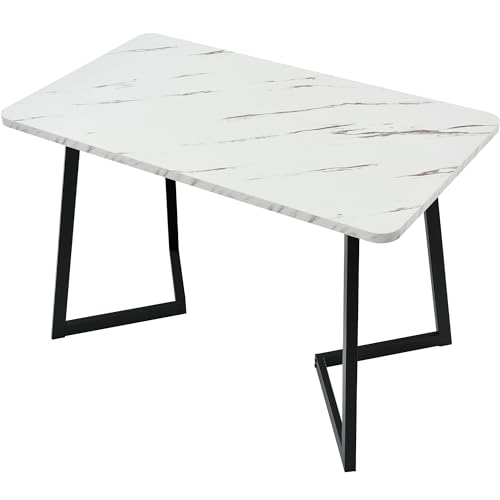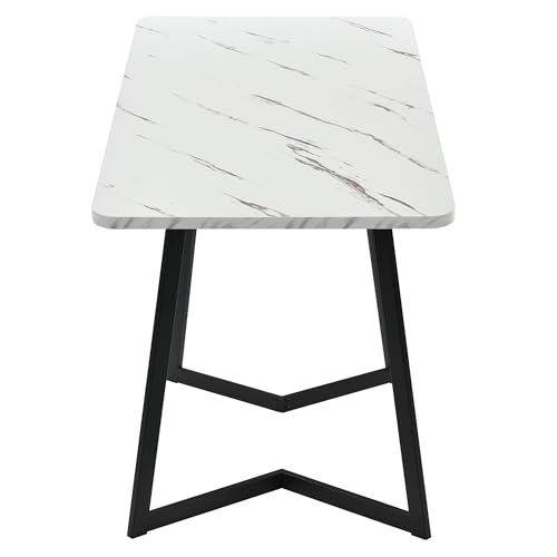 ModernLuxe Dining Table in Marble Pattern, Metal Frame Rectangular Kitchen Table with Metal Legs for Dining Room Living Room, 117x68cm, White Desktop & Black Legs, 1PC