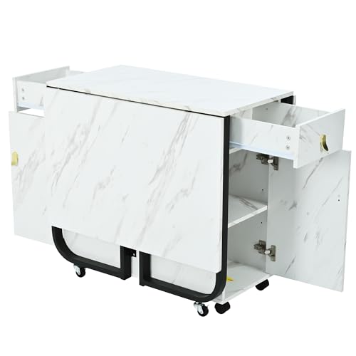 • 【Flexible and customizable】Flexible folding and extending, three different modes for different needs. This kitchen table not only impresses with its stylish appearance and versatility but can also be flexibly adapted to meet your different needs. Whether as a desk, dining table, or storage cabinet, it can be effortlessly customized.