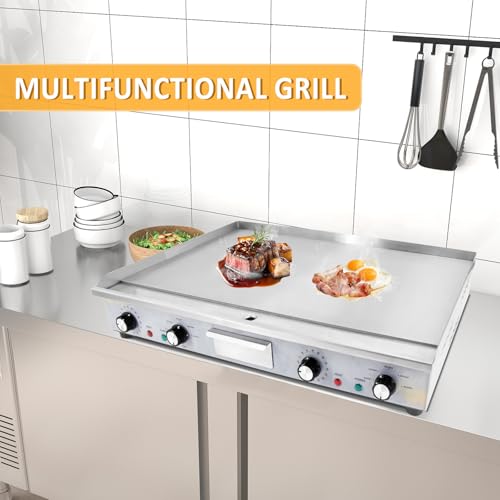 - 【Wide Application】 Our electric griddle is suit for meat, steak, squid, pancakes, scrambled eggs, etc. widely used in snack bars,canteens,chain stores,etc.