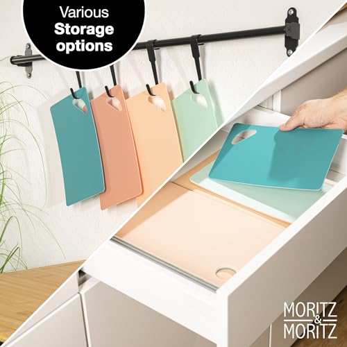 Moritz & Moritz 4X Kitchen Cutting Boards 25 x 14.5cm – Chopping Boards for Kitchens – Coloured Chopping Boards Set – Anti-Slip Surface for Safe Cutting Grip Opening – Flexible Chopping mats
