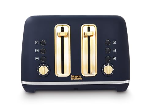 Morphy Richards Accents 4 Slice Toaster, Soft Gold Collection, Variable Browning, Removable Crumb Tray, Cord Storage, Non-slip, 2200W, Navy, 242045
