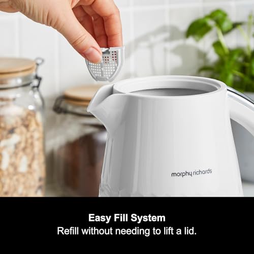 Morphy Richards Hive Kettle, 1.5L, Easy Fill System, Enhanced Waterspout, 3KW Rapid Boil, 360 Degree Base, Limescale Filter, Water Viewing Window, White, 108274