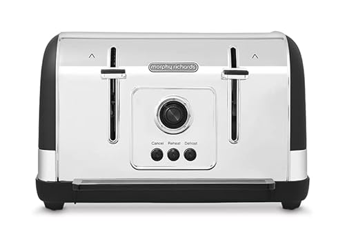 Morphy Richards Venture Retro 4 Slice Toaster, Radio Dial, Variable Browning Control, Width Slots, Removable Crumb Tray, 1900W, Basalt and Nickel, 240335