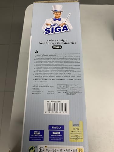 MR.SIGA 6 Piece Airtight Food Storage Container Set, BPA Free Kitchen Pantry Organization Canisters, Kitchen Storage Containers with One-Handed Leak Proof Lids, Black