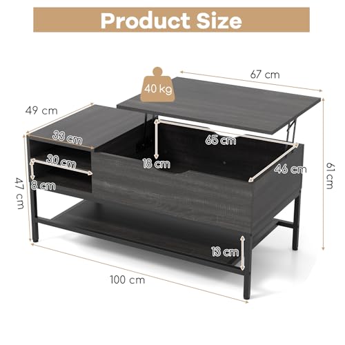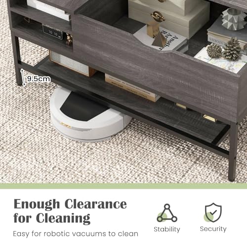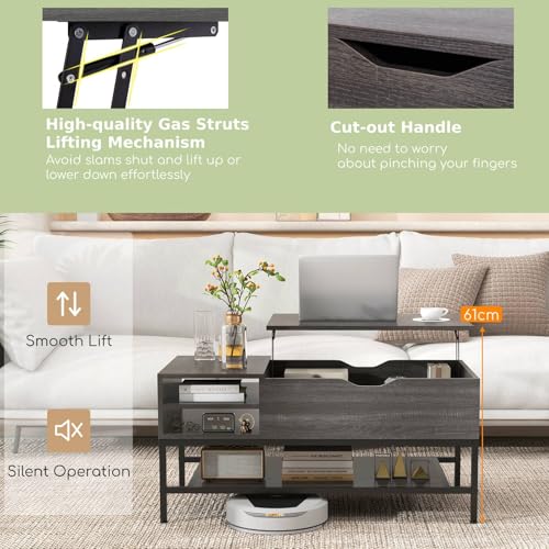 Multigot Lift Top Coffee Table, Rectangle Wooden Cocktail Center Table with Hidden Storage Compartment & Open Shelf, Low Accent Snack Sofa Side Tea Table for Living Room Office (Grey)