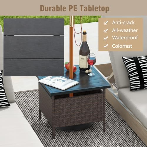 Multigot Rattan Garden Side Table, Patio Wicker Bistro Dining Tables with Umbrella Hole, Pool Umbrella Coffee Table for Backyard, Patio and Beach (With 5CM Umbrella Hole)