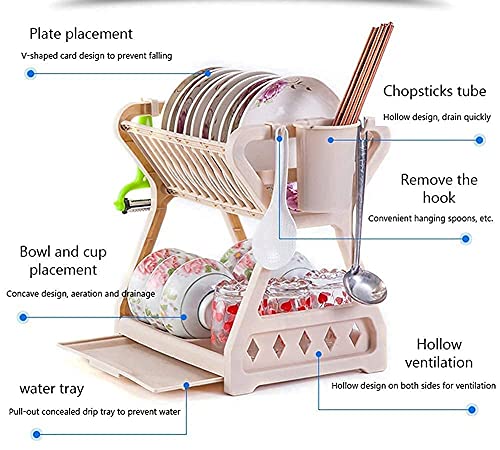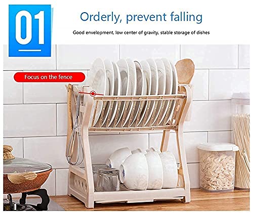 MYXJX dish drainer rack, Dish Rack 2 Tier Dish Drying Rack with Drain Board Utensil Holder Cutting Board Holder Dish Drainer for Kitchen Countertop Neat(A)