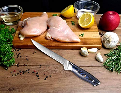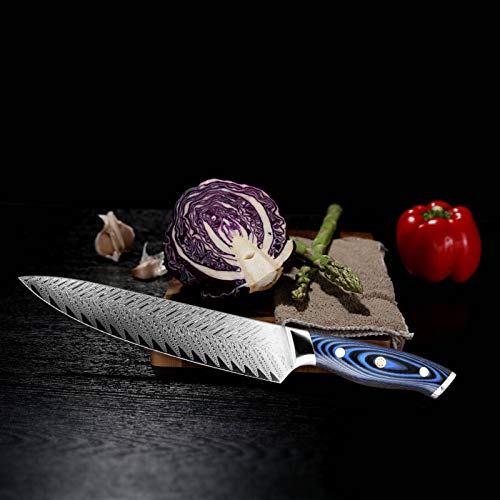 - Knife Blade Material: Imported japanese premium VG-10 damascus steel, forged by 33 layers per side, features an ultra sharp VG-10V vacuum treated Japanese super steel cutting core.