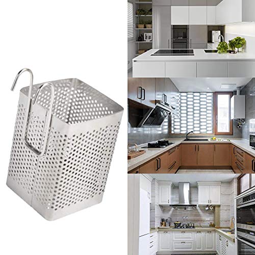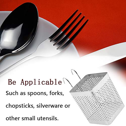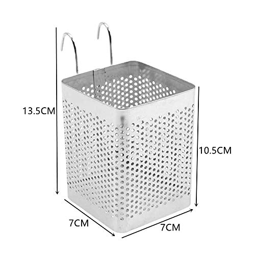 NA Cutlery Draining Basket Stainless Steel Utensil Holder Hooks Square Storage Stand for Spoon Knife Fork Case Organizerzer