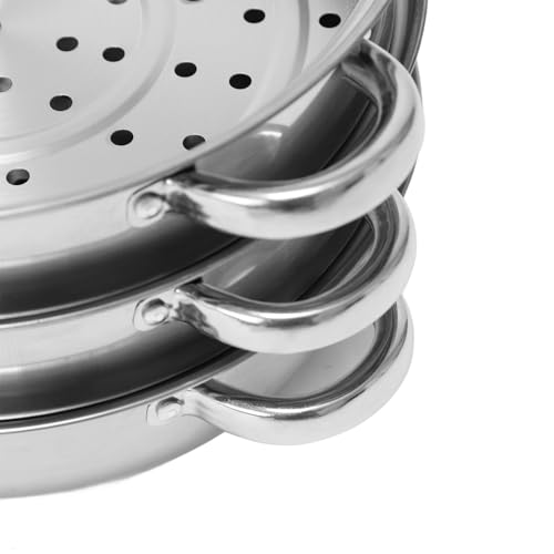 Natudeco Soup Steam Pot 3 Tier Thickened Stainless Steel Multifunctional Steamer 27cm Double Ear Steam Pot with Lid for Vegetables Seafood