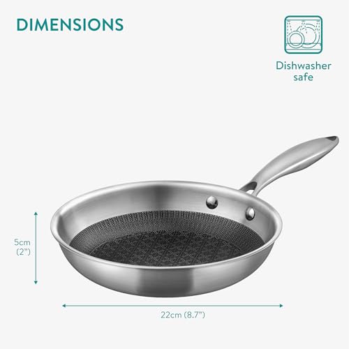 Navaris Stainless Steel Frying Pan – Durable & Scratch Resistant 22cm/8.66" Pans w/Stay Cool Metal Handle – Tri-Ply Construction Ideal for All Stoves, Oven Safe