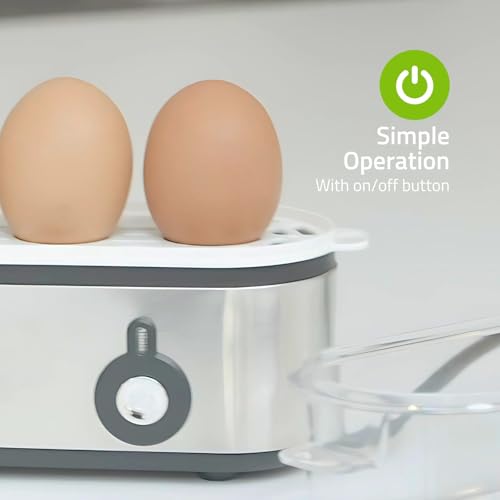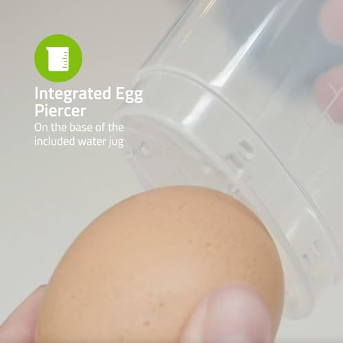 - [EASY TO USE] – Simply pour the correct amount of water with the provided jug. Poke a hole in each egg using the integrated egg piercer on the back of the jug to avoid cracking during cooking, then turn the machine on with the straightforward on/off button. It’s really that simple!