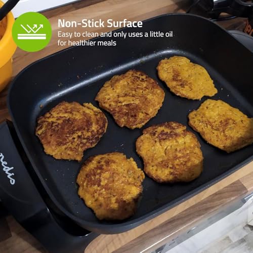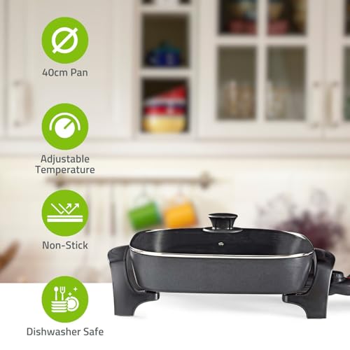 • EASY TO CLEAN NON-STICK COATING – The interior cooking surface offers a flawless finish with superior non-stick properties making this electric frying pan very easy to clean, and also requires less oil to cook with – so you can prepare tasty, healthy meals. To make things even easier, both skillet and lid are dishwasher safe, so cleaning is just as quick and effortless.