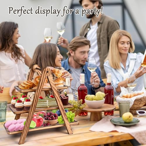 - Removable Design: Three wooden trays can be removed from the tiered cupcake stand and used individually. Each tray has notches on the bottom to ensure stability and prevent falling