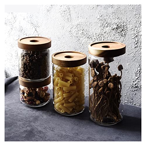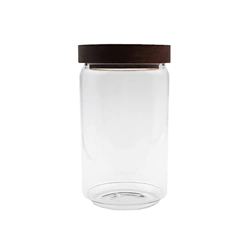 - nihngvjm canisters Transparent Glass Storage Tin Tea Sealed Tin Cans Acacia Wooden Lid Candy Box Dried Fruit and Multigrain Coffee Bean Storage Jar (Color : L-950ml)