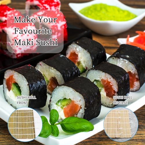 - 【Perfect for Sushi Enthusiasts】Whether you're a beginner or a seasoned sushi DIY enthusiast, these mats are ideal for making sushi with family members or friends. Elevate your sushi-making experience with these reliable and versatile bamboo sushi rolling mats.