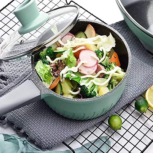 NMNMNM Milk Pot pan,Household Pot, Milk Pan Sauce Pan with Glass Lid,Milk Pot Nonstick Saucepan Granite Coating for Home Kitchen Or Restaurant Saucepans (Color : Green, Size : 16cm) (Green 16cm)