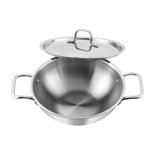 Nobel Platinum Triply Stainless Steel Cookware Deep Kadai with Stainless Steel Handled lid – Wok for Stir Fry Cooking (20 cm Diameter)