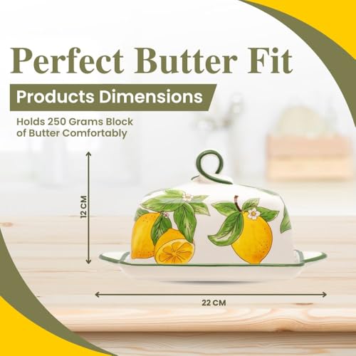 - Beautiful Retro Design: Featuring a superb lemon themed print, with a beautiful colour combination of white, yellow and green, these butter dishes with lids ceramic will nicely compliment any kind of decor, adding a whimsical retro touch to your modern kitchen.