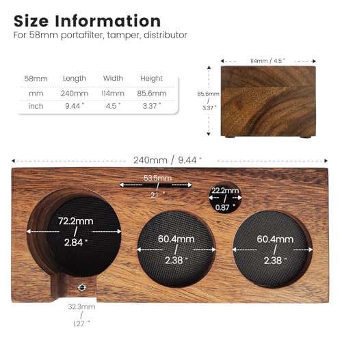 - 【High-quality Material】The tamper station is suitable for 58mm portafilter and is made of natural walnut wood. It has a unique grain and can be used for a long time. It is shockproof and durable, with a sturdy texture.