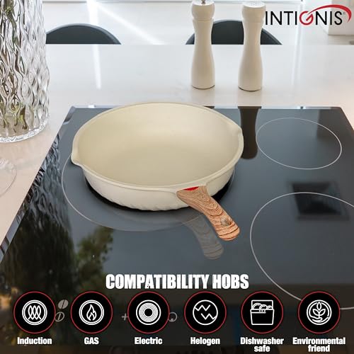 - ✅ Induction & All Hob Compatible This induction frying pan features a stainless-steel bonded base for uniform heating. Suitable for induction hob, gas, ceramic, electric & halogen cookers.