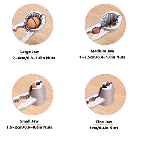 - EXCEPTIONAL PRACTICALITY—The finely serrated teeth design allows for effortless clipping of walnuts, regardless of size, ensuring they do not fall out, and can be broken in mere seconds. The four clip mouth design accommodates various nut sizes.