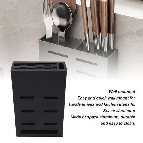 Nutriess Space Saving Wall Mounted Block Sturdy Aluminum Wall Hanging Knife Rack Multipurpose Slot Holder for Kitchen Utensils