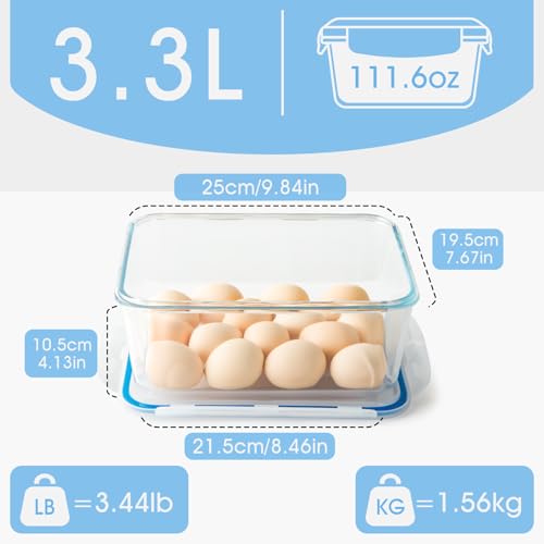 NUTRIUPS 3.3L Large Glass Food Storage Containers with Lids, Rectangular Food Storage Set, BPA Free for Meal Prep, Travel, Freezer, Oven