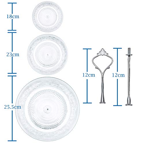 Nyxi 3 Tier Cake Stand Afternoon Tea Serving Plate Embossed Glass Cake Stand Round Display with New Crown Fittings