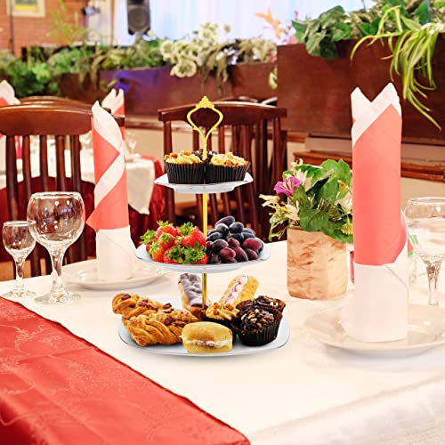 Nyxi Cake Stand Afternoon Tea White Ceramic Square Plates 3 Tier Cake Stand Porcelain Display with New Gold Crown Fittings