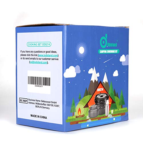 Odoland Camping Cookware Mess Kit for 2 People, Lightweight Outdoor Pot Pan Kettle with 2 Cups, Fork Spoon Cookware Kit Backpacking Picnic Gear for Trekking and Hiking