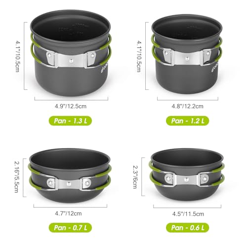 - ✅ ENJOY COOKING ANYWHERE YOU GO: This cookware set is designed for anyone who loves outdoor camping with family and friends! It is super portable, making it much more convenient for camping, hiking, hiking, picnic and other outdoor activities!