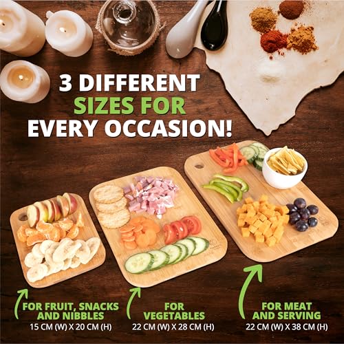 Oliver's Kitchen ® 3 x Set of Wooden Chopping Boards – Different Sizes for Every Occasion – Beautifully Designed, Durable & Hard Wearing – 100% Natural Organic Bamboo Cutting Boards – Easy to Clean