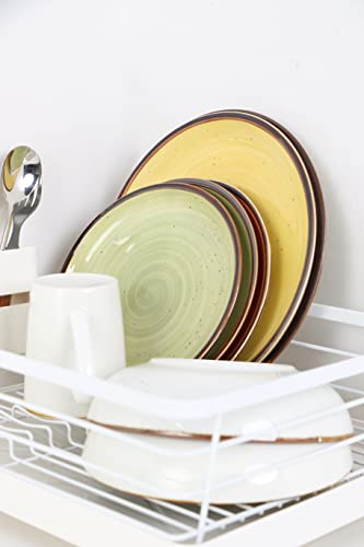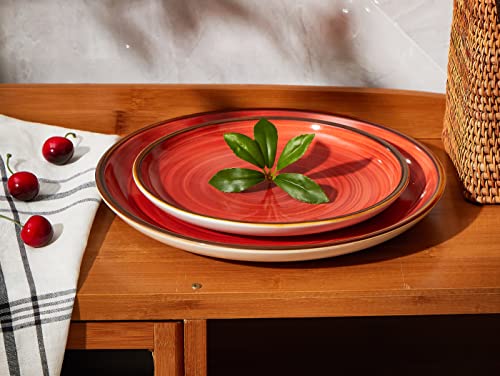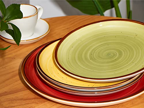 - 【Well Made Rustic Style】: With a distinctive look and eye-catching color that distinguishes this plate set from others, each salad plate is decorated with chestnut brown speckle and a rustic edge in bronze, making it a classic retro look. 4 colors inset – blue, red, green and yellow, a nice addition to your dining table and kitchen
