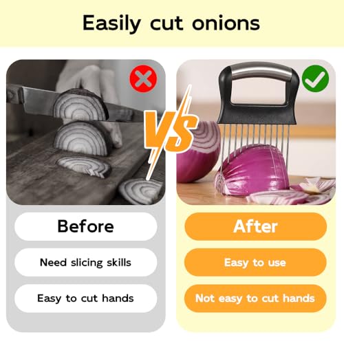 - 2025 Upgraded Onion Slicer: Keep onions firmly in place with 10 stainless steel forks, allowing for quick and easy slicing without any mishaps.