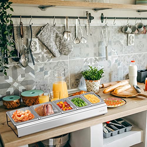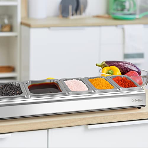 only fire Pizza Topping Station Stainless Steel Seasoning Containers with Lid, 5 Compartment Trays for Preparing Ingredients and Toppings
