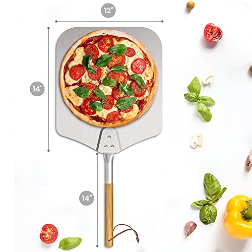 - Dimensions: 12-inch wide by 14-inch long for the pizza peel placing surface, with 10-inch handle.