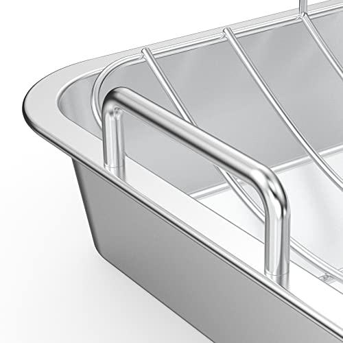 Onlyfire Stainless Steel Roasting Tin with Rack, Metallic Non-Stick Roasting Tray with Handles for Chicken/Turkey/Poultry/Vegetables