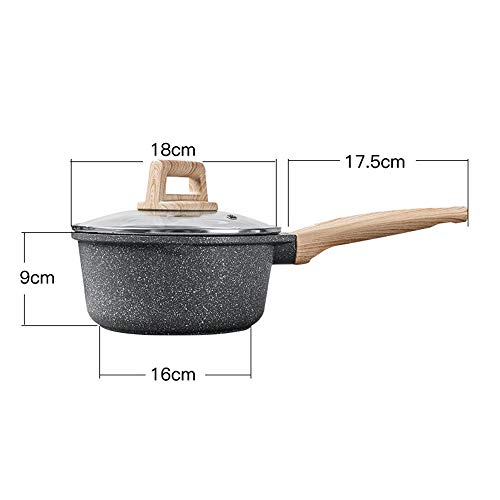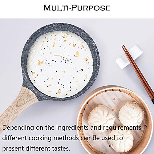 OQHAIR Maifan Stone Non-Stick Sauce Pan with Glass Lid Soup Pot with Wood Steamer (7 Inch)/Single Pot