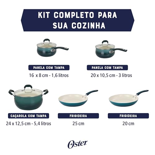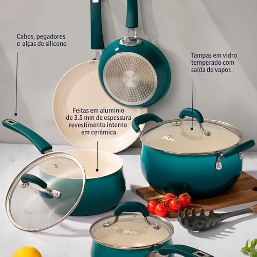 Oster Corbett 8 pc Gradient Teal Forged Aluminum Cookware Set with Ceramic Non-Stick – Induction Base – Soft Touch Bakelite Handle and Tempered Glass Lids