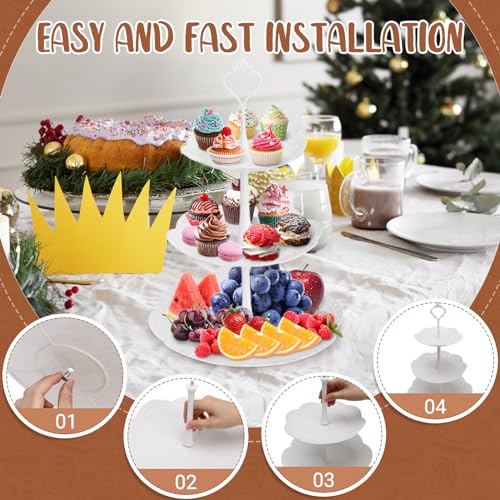 - 🍰【Premium Cake Stand】White cupcake stand is made of thick plastic, which is safe, firm, non-toxic and odorless, large in capacity, reusable and easy to clean. Multi-layer design allows your desktop to have more places to put things.
