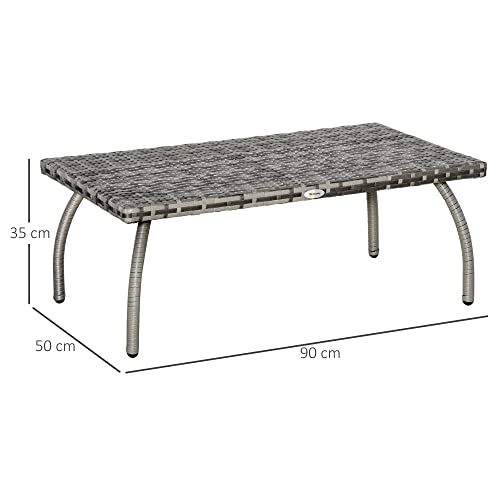 Outsunny Rattan Garden Coffee Table, PE Wicker Outdoor Garden Table with All-Weather Material for Garden, Balcony, Porch, Grey