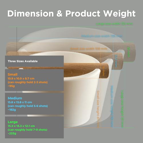 - Product Dimension & Weight: Size M: W13.8 x D13.8 x H11cm (roughly hold 5-6 shots) ~182g Knock Bar Dimension: Size M: Diameter 2.22cm x Length 14cm